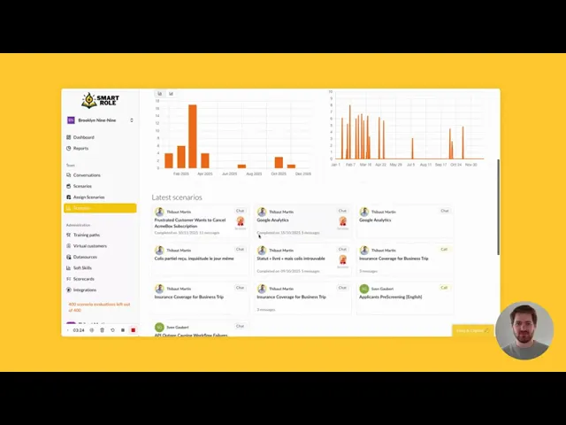 Guides Vidéo Complets : Commencez par un aperçu global pour vous familiariser avec les bases de Smart Role, suivi de tutoriels détaillés sur les fonctionnalités clés telles que la création de scénarios, les personas et l'expérience d'embauche.