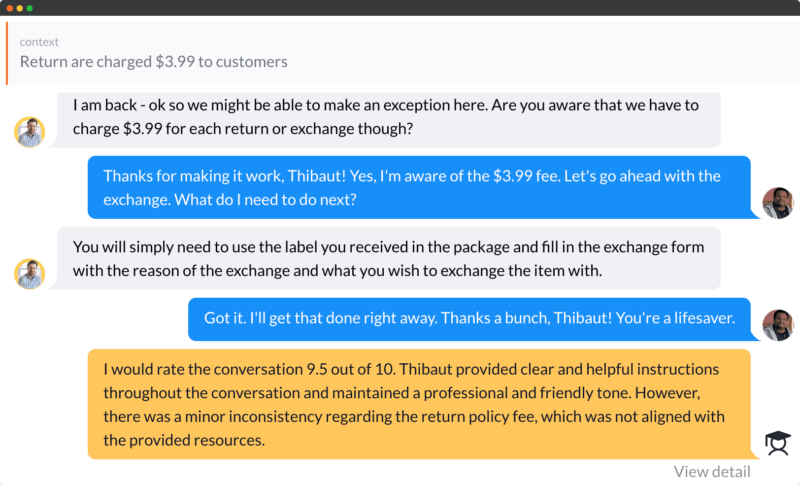 Simulated real-world customer inquiries: Train agents for product, order, and returns inquiries